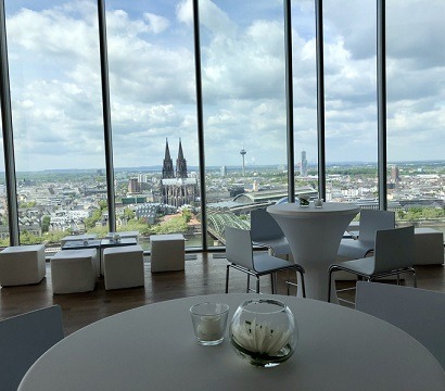 Einzigartige Event-Location in der 27. Etage des KölnTriangle mit atemberaubendem Blick auf die Kölner Skyline.